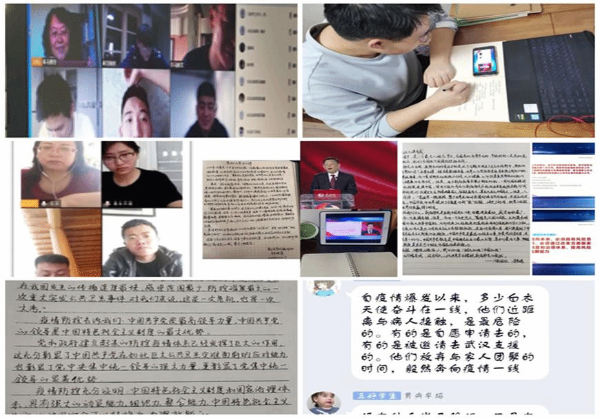 马克思主义学院思政课教师在课程结束后立即组织全校学生按班级召开了线上“云班会”,分享学习感受和体会,深化思想认识。师生们纷纷表示,“同上一堂疫情防控思政大课”把当前的疫情防控与思政课教学紧密结合,讲出了中国共产党领导和中国特色社会主义制度的显著优势,充分展现了中国人民众志成城、同舟共济的精神风貌,增强了广大师生的理想信念和使命担当。